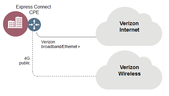 The management of your router for Express Connect/Wireless Backup is only available with Verizon provided Private IP and Internet Protocol Security Virtual private network (IPSEC VPN) at this time. You are responsible for the management of your router with Internet Dedicated Services.