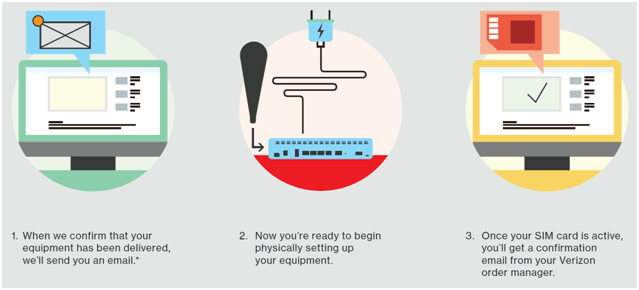 - Verizon will ship the router to your specified location within 8 business days of a clean order (from the final Order Verification Call and successful order completion and submission). The Subscriber Identification Module (SIM) card will be activated after your acknowledgement of the receipt of the router.