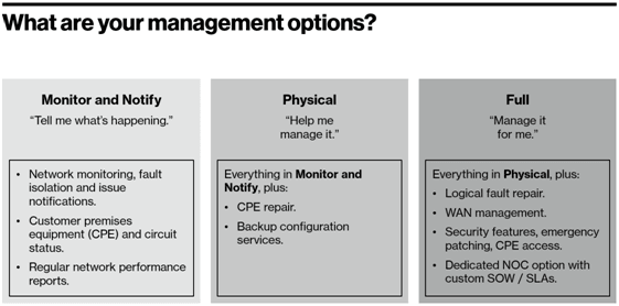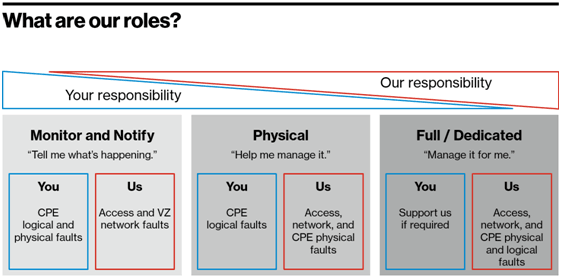 Note: An alarm will trigger for only those network items under management by Verizon. Any non-Verizon network elements will need to be cared for by you.