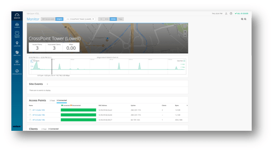 You can monitor your managed network through near real-time reporting that provides information on usage, coverage, security, performance, and capacity. Additionally, we provide a portal to you as a standard feature enabling near real-time tracking of the managed service implementation process, project status, inventory tracking, contacts, change management requests, and trouble tickets.