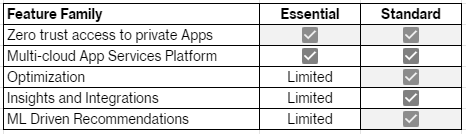 Multi-Cloud App Access Manager is available in two tiers: Essential and Standard. Pricing is based on the number of contracted users in the enterprise and the selected tier.